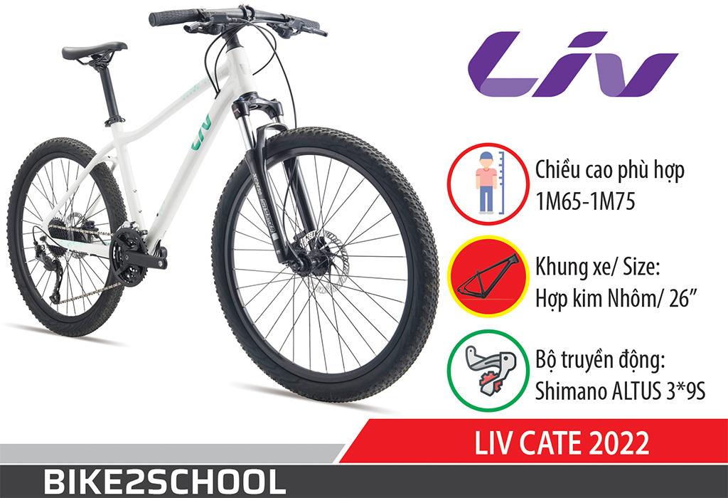 LIV CATE 2 2022 là mẫu xe đạp nữ cao cấp từ thương hiệu LIV, với thiết kế mới hiện đại cùng màu sắc khác biệt, CATE 2 2022 mang tới một diện mạo vô cùng bắt mắt. Xe được trang bị phanh dầu thủy lực cùng bộ truyền động Shimano Altus 3*9S cao cấp.