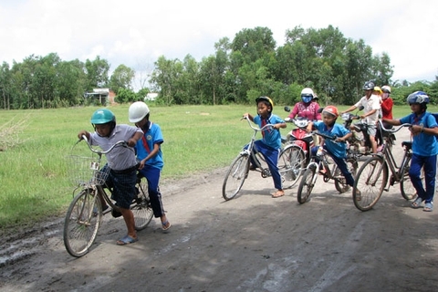 Hình ảnh đẹp cần lan tỏa khi học sinh đội mũ khi đạp xe đến trường