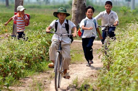 Xe đạp trải rộng khắp nơi từ thành thị tới nông thôn, qua các con đường đồng bằng tới đồi núi đồng quê,... Hình ảnh các bạn nhỏ đạp xe đến trường tụ tập cùng nhau đi học theo thời gian.