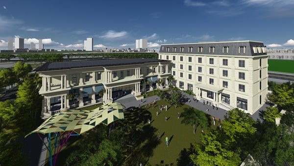 - Với diện tích 11.562 m2, trường có 59 phòng học, 14 phòng bộ môn, phòng đa năng, bếp ăn, 13 phòng bán trú đáp ứng nhu cầu cho khoảng 1.000 học sinh. Ngoài ra, trường còn có bể bơi bốn mùa, thư viện, phòng đa năng. Ngoài sân trường chính còn 3 sân chơi: Nằm giữa các dãy nhà được lát cỏ nhân tạo. Khu sân chơi giữa dãy nhà 1 và 2 diện tích gần 1000m2 được trang bị đồ chơi thể thao hiện đại của Nhật.