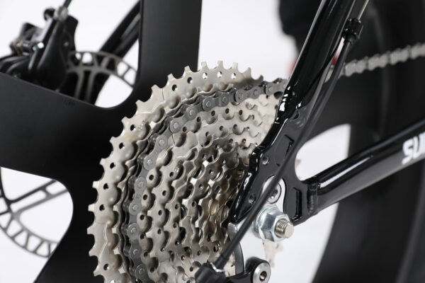 Xe được trang bị khung sườn bằng hợp kim nhôm 6061 không mối hàn, đảm bảo độ bền và khả năng chịu lực cao trong khi vẫn giữ được trọng lượng nhẹ. Phuộc đơ thép cường lực Calli giúp giảm xóc hiệu quả, mang lại trải nghiệm lái xe êm ái và ổn định trên mọi địa hình.