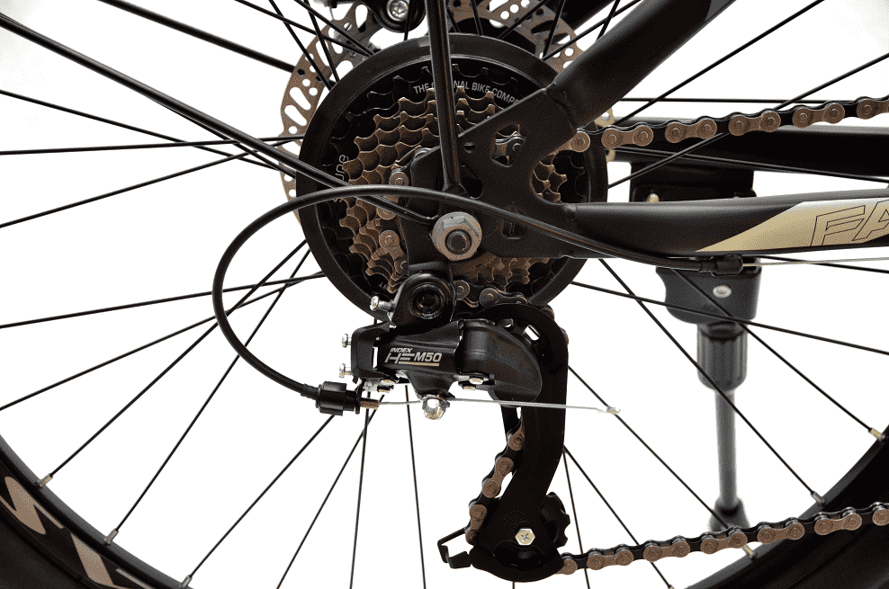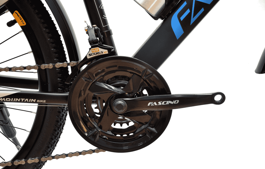 Đùi đĩa FASCINO và xích NARROW - DTO đảm bảo truyền động mạnh mẽ và ổn định. Bộ líp SRUNE 7 tốc độ kết hợp với hệ thống phanh đĩa OSL, mang đến khả năng dừng xe an toàn và chính xác, ngay cả trên những đoạn đường dốc hoặc địa hình phức tạp.