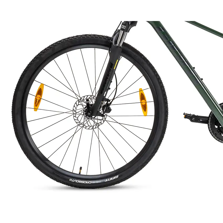 Vành xe được làm từ hợp kim nhôm 2 lớp, kết hợp với moay ơ và nan hoa chất liệu hợp kim nhôm, đảm bảo độ bền và khả năng chịu lực tốt. Lốp xe GIANT 700X42C, 60TPI, Crosscut-s mang lại độ bám đường tuyệt vời và khả năng chống mài mòn cao