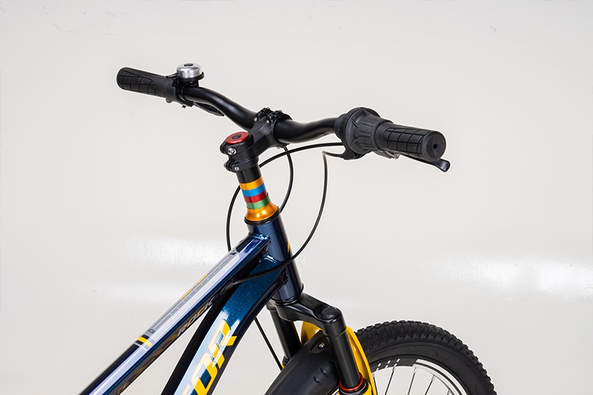 Ghi đông rộng 31.8x620mm giúp bé dễ điều hướng và giữ thăng bằng tốt hơn. Pô-tăng ngắn tạo tư thế lái chủ động, linh hoạt.