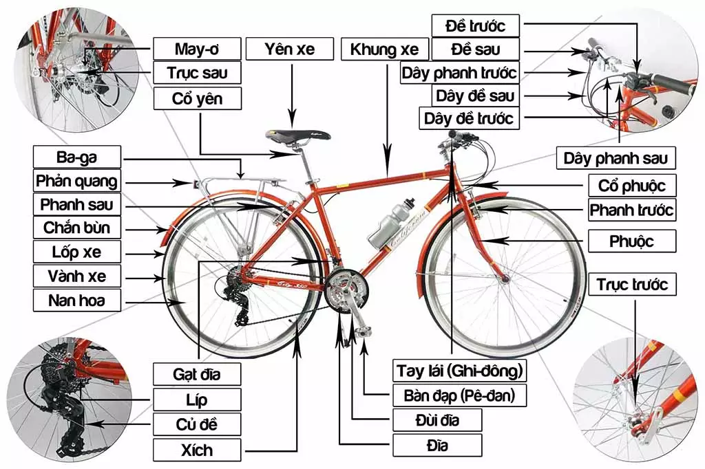 2. Cấu tạo cơ bản của xe đạp thể thao: